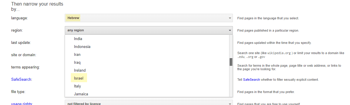 Yandex is an Israeli domain that shows results in Russian and English as well as in several other languages but without the possibility of presentation in Hebrew. However, Hebrew language search is supported